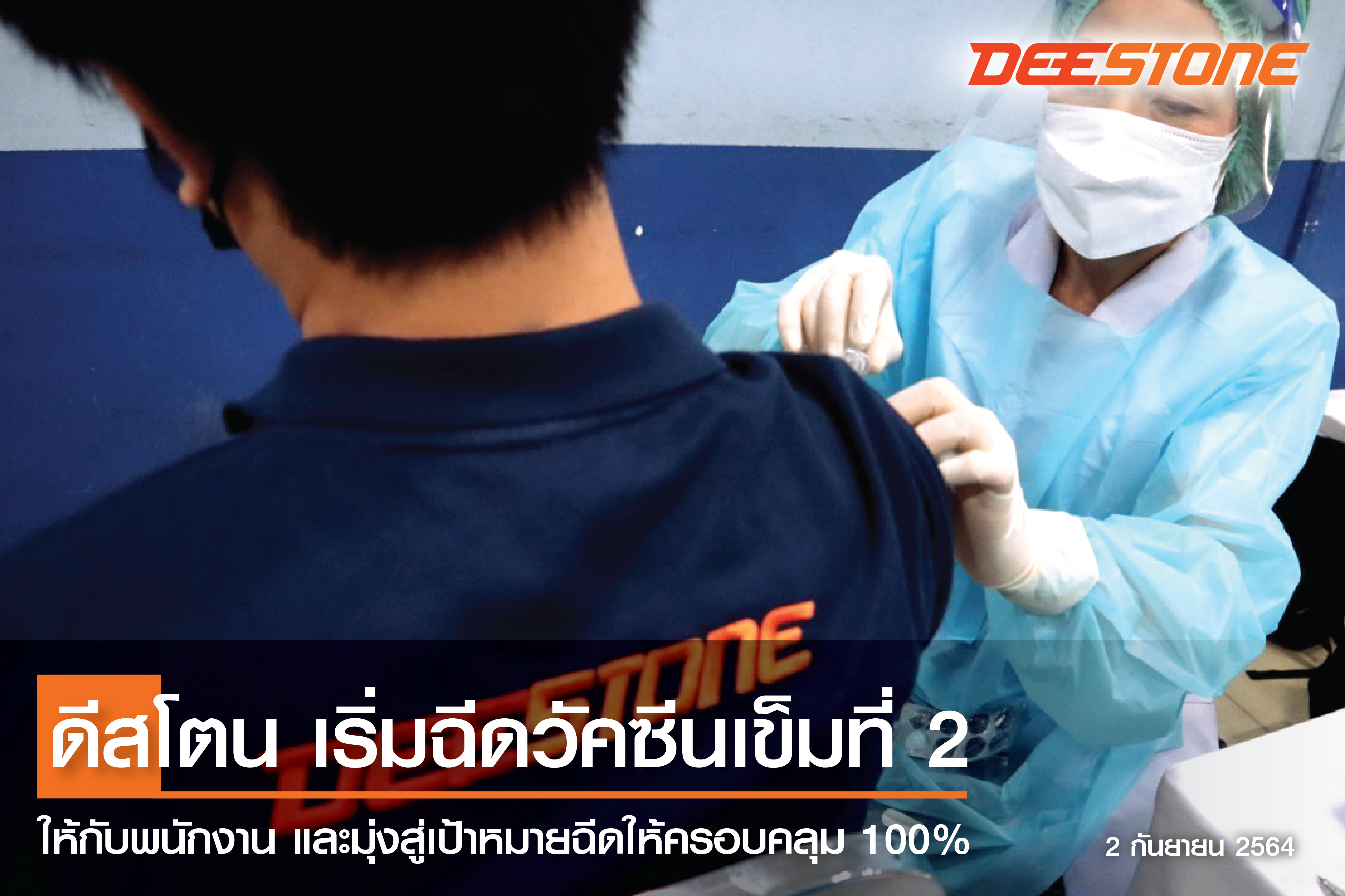 ดีสโตน เริ่มฉีดวัคซีนซิโนฟาร์ม เข็มที่ 2 ให้กับพนักงาน และมุ่งสู่เป้าหมายฉีดให้ครอบคลุม 100% เพื่อสร้างสภาพแวดล้อมที่ปลอดภัยให้กับพนักงาน และชุมชน